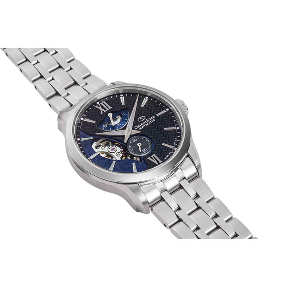 Оформить заказМужские японские наручные часы Orient Star AV0B03B [RE-AV0B03B] с полускелетоным видом циферблата и римскими цифрами в позиции 6 и 12 часов. Калибр механизма F6N44 с 24 камнями и 21600 колебаний в час. Ретроградный указатель запаса хода 50 часов с возможностью ручного завода и точностью +25 сек. -15 сек.. Смещенная секундная стрелка в отдельном циферблате в позиции 6 часов. Механизм остановки времени для настройки точности секундной стрелки. Прочное, устойчивое к царапинам, сапфировое стекло с антибликовым покрытием и двойной кривизной обеспечит защиту часов от повреждений. Прозрачная и завинчивающая задняя крышка. Высокая водонепроницаемость 100WR (10 Бар) идеально подходит для плавания с маской и трубкой. Корпус часов выполнен из нержавеющей стали (SUS316L). Браслет из нержавеющей стали, раскладывающийся пряжка с кнопкой. Магнитное сопротивление 4800 А/м. Вес 151 г.