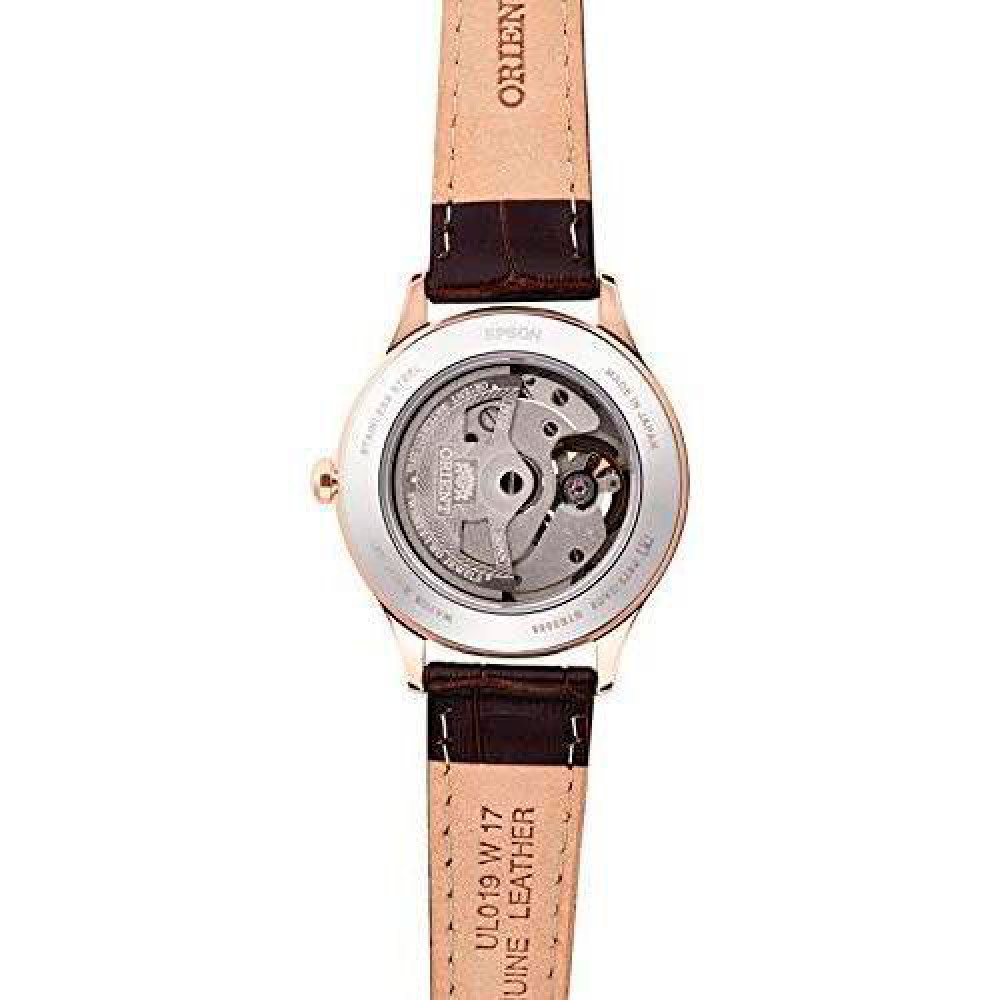 Оформить заказЖенские японские наручные часы Orient AG0727Y [RN-AG0727Y] с циферблатом классического стиля. Калибр механизма F6T22 с 22 камнями и 21600 колебаний в час. Запас хода 40 часов с возможностью ручного завода. Механизм остановки времени для настройки точности секундной стрелки. Прочное, устойчивое к царапинам, минеральное стекло обеспечит защиту часов от повреждений. Водонепроницаемость 30WR (3 Бар) защитит Ваши часы от брызг и дождя, но плавать в них нельзя. Прозрачная задняя крышка. Корпус часов выполнен из нержавеющей стали. Ремешок из натуральной кожи.