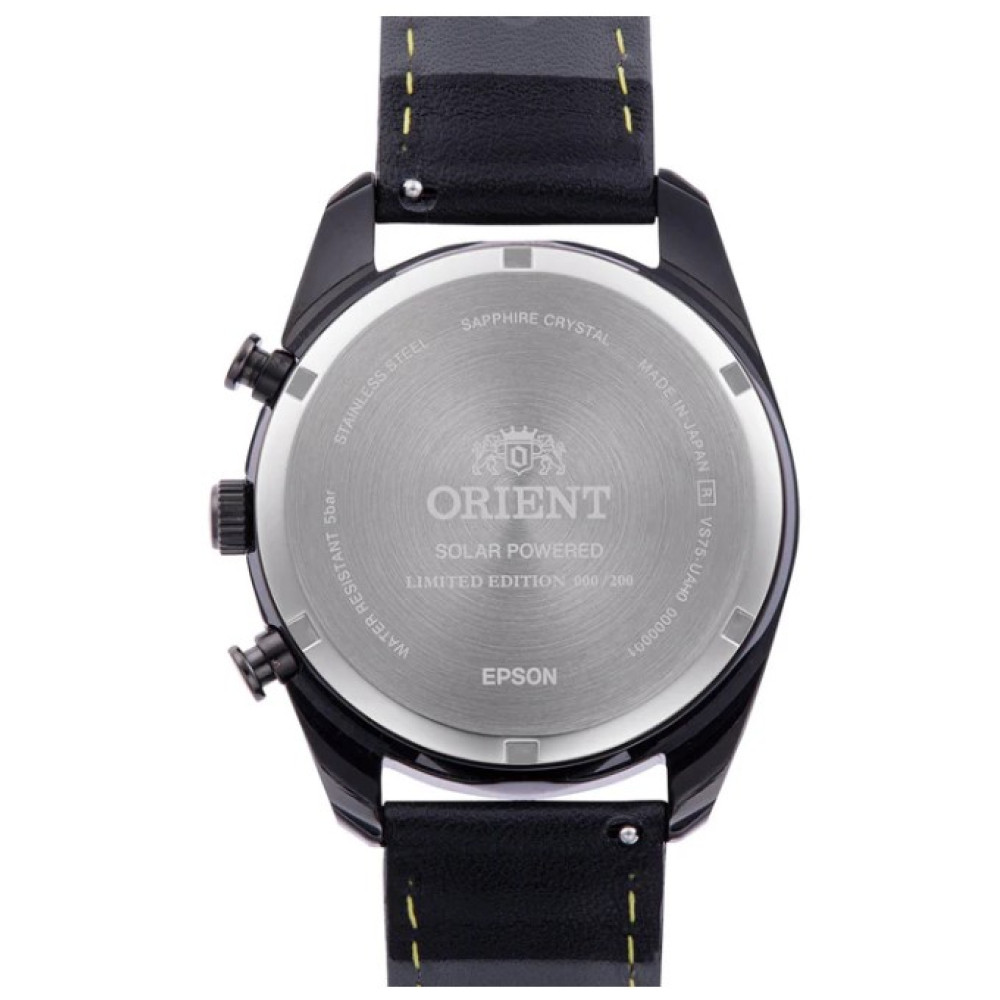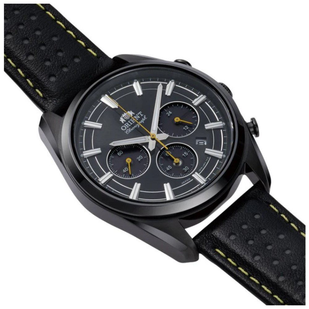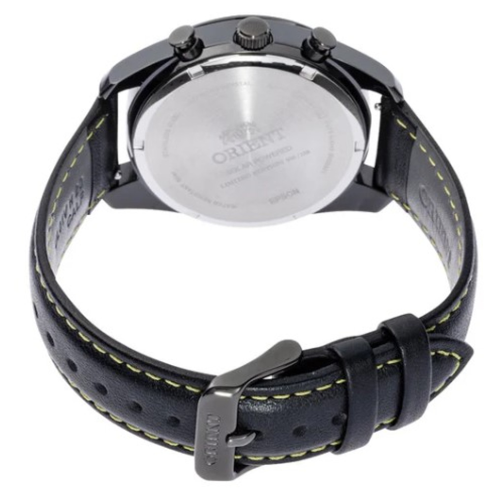 Оформить заказМужские японские наручные часы Orient TX0309B [RN-TX0309B] часы-хронограф на солнечной энергии. Калибр механизма VS752. Зарядка солнечной батареи осуществляется через три дополнительных циферблата: 24-часовой индикатор в положении 3 часов, 60-минутный счётчик в положении 6 часов и малый секундный циферблат в положении 9 часов. Окошко даты между 4 и 5 часами. Прочное, устойчивое к царапинам, сапфировое стекло обеспечит защиту часов от повреждений. Высокая водонепроницаемость 50WR (5 Бар). Не снимая часов, Вы можете принимать душ или мыться в ванне. Корпус часов выполнен из нержавеющей стали. Ремешок из натуральной кожи.